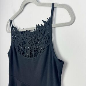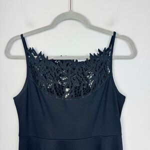 Super cute little black dress by Free People. Lace trim. Sleeveless. Stretch. Hits just above the knee. Great preowned condition. Women’s size medium.