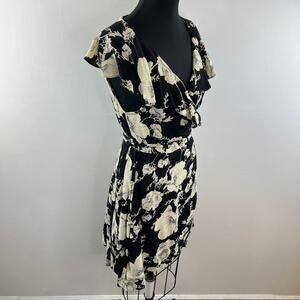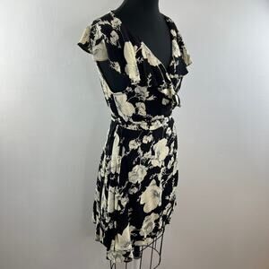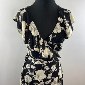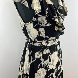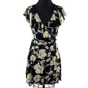FREE PEOPLE French Quarter Printed Mini Wrap Dress Black Floral Tie Ruffle S