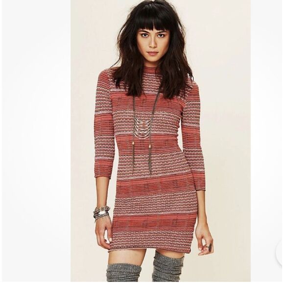 FREE PEOPLE GROOVY SWEATER DRESS Knit Stripe Mockneck 70s Trend Mini Bodycon S