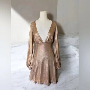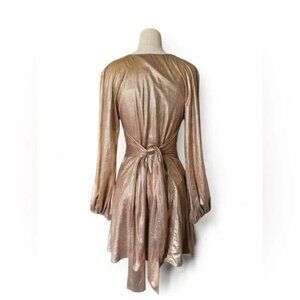 FREE PEOPLE | Good As Gold Foil Metallic Holiday Tie Wrapped Plunge Mini Dress 4