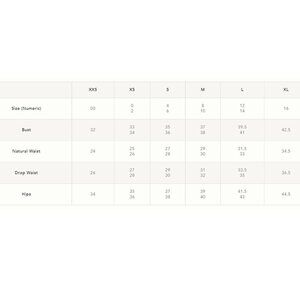 Holds-you-in high rise. Super-soft feel. In good preowned condition with no noted flaws. Brand’s size chart in the last photo.