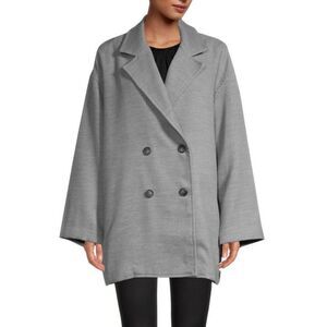 FREE PEOPLE Gray Double Breasted Hannah Slouchy Blazer Coat. It’s a way oversized size S. It’s oversized even for a M, so this best fits a M-L. $168 retail. New without the tags. No flaws. Bag with extra button is still attached.
