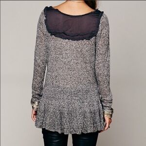 FREE PEOPLE Gray Ruffle Drop Hem Henley Blouse