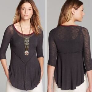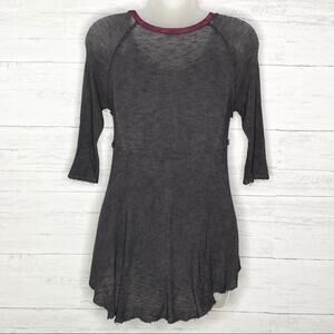 FREE PEOPLE Gray raw hem lightweight waffle knit top WOMEN'S SIZE SMALL