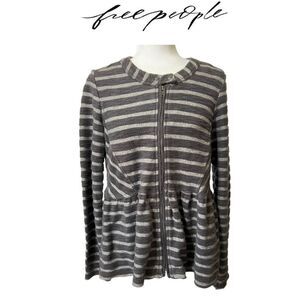 FREE PEOPLE Gray striped peplum sweater jacket Size Small zip up cotton blend
