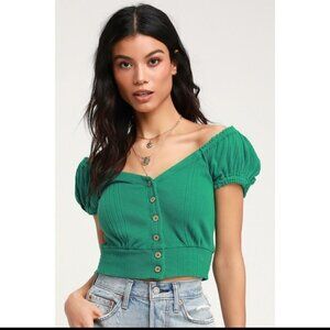 FREE PEOPLE Green Brighter Days Button Front Crop