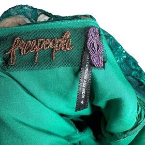 FREE PEOPLE Green Lace Embroidered Beaded Shorts Romper Women's Size 4 FLAWED