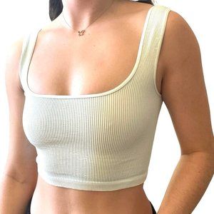 FREE PEOPLE HAPPINESS RUNS MINT GREEN SQUARE NECK CROP SZ: XS/S M/L NWOT