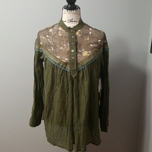 I love this shirt. But free people has a bad way of advertising color!! In their photos it's a nice bright green which I love and here it is more of an olive. I wonder if other people ever let FP know this. It's really not a great way of selling product when we order from them and another color arrives. Nothing against you....