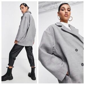 FREE PEOPLE Hannah Slouchy Double Breasted Gray Blazer Coat Size Large NEW