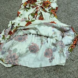 FREE PEOPLE Happy Heart Mini Dress Ivory Orange Floral Women's Size Medium Party