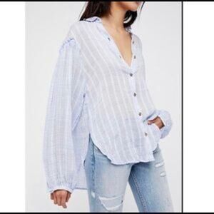 FREE PEOPLE Headed To The Highland Semi-sheer Button Up Shirt In Blue Size XS