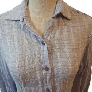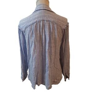 Feel the refreshing breeze in Free People's Headed To The Highlands Button Up. Miniature ruffles detail the shoulders of this gauzy cotton-blend blouse, adding a touch of structure to its billowy peasant shape.. 50% cotton 50% rayon. Front button closure. Ruffle trimmed sleeves. Buttoned sleeves. Side seam slits. In excellent condition!