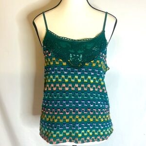 Free People Heartbeat Rochelle Electric Green jade tank top crochet shirt