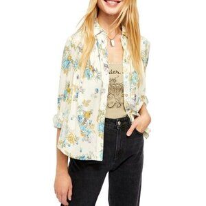 FREE PEOPLE Hold On to Me Contrast Floral Print Button Ivory Blouse Size S NWT
