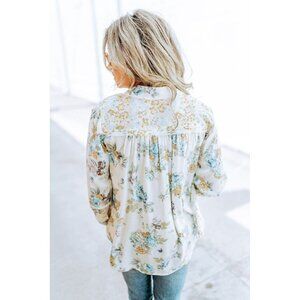Wildflowers adorn this long sleeved airy shirt with shirred details.