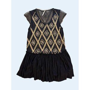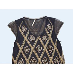 FREE PEOPLE Holiday to India Beaded Sheer Cap Sleeve Top Size Small