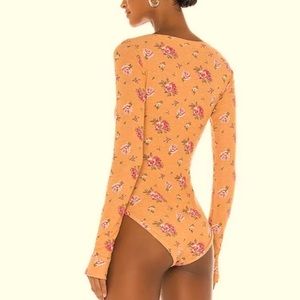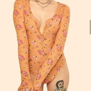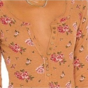 FREE PEOPLE INTIMATELY DYLAN THERMAL BODYSUIT TAN COMBO LONG SLEEVE W/THUMB HOLE