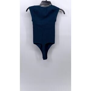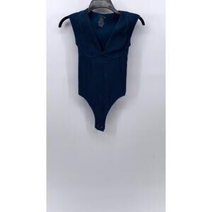 FREE PEOPLE INTIMATELY Women's Blue Ribbed V-Neck Cap Sleeve Thong Bodysuit SZ XS/S