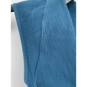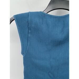 FREE PEOPLE INTIMATELY Women's Blue Ribbed V-Neck Cap Sleeve Bodysuit SZ XS/S