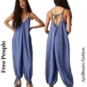 Get ready to turn heads in this stunning Free People Isla Jumpsuit! The jumpsuit features a beautiful blue color that will make you stand out from the crowd. It's perfect for any occasion and is a great addition to anyone's wardrobe. The jumpsuit is from the Free People brand, ensuring that you get the quality and style that you deserve. This jumpsuit is a size large and is perfect for regular size types. The jumpsuit is a one-piece design that is both stylish and comfortable. It's an excellent choice for women of all ages and is sure to become a favorite in your wardrobe. Don't miss out on this fantastic addition to your closet! Isla Jumpsuit Blue with pink stripe stitching Has Adjustable Straps and Includes Pockets