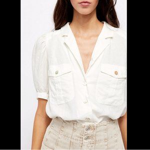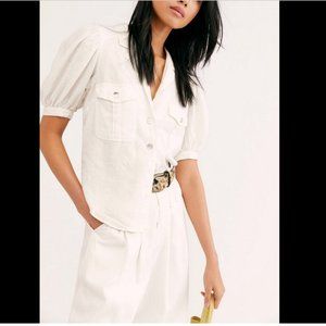 Free People Ivory Elbow Sleeve Safari Babe Top