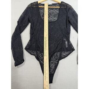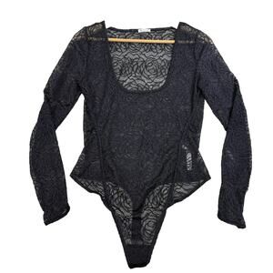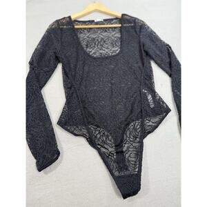 FREE PEOPLE In My Head Sheer Lace Bodysuit Size Medium NWOT Black
