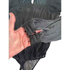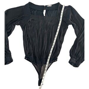 FREE PEOPLE Intimately Black Long Sleeve Square Neck Thong Bodysuit XS $69
