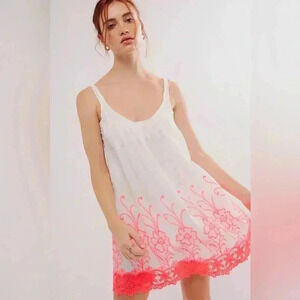 FREE PEOPLE Intimately Day Glow Crochet Embroidered Shapeless Slip Dress NWOT XS