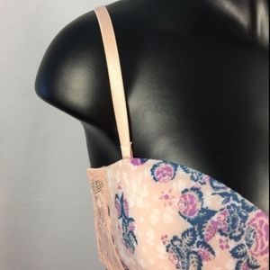 Brand new without tags. Softly padded bra with underwire. Floral pattern. Straps can be converted and removed for strapless bra. Three hook closure. Lace covered back. Multiple sizes