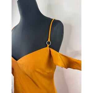 Free People Intimately Gold Yellow Slip Dress Satin Off The Shoulder Size Medium