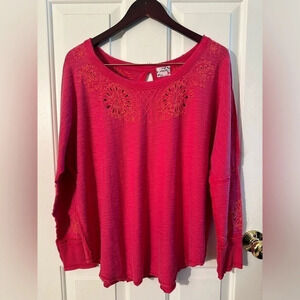 FREE PEOPLE Intimately SMALL Pink Embroidered Oversized Backless Cut Out Raw Hem