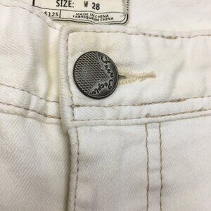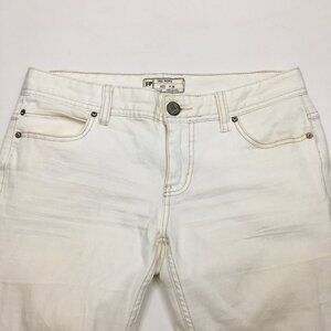 FREE PEOPLE Ivory Distressed Raw Step Hem 5 Pocket Logo Hardware Skinny Jeans