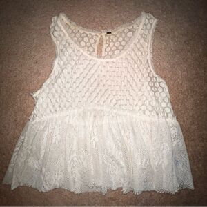 FREE PEOPLE Ivory Lace Peplum Tank Top - Size Small
