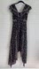 Features: V-neckline, ruffled shoulders, asymmetric bottom hem, tie closure at back