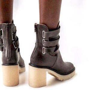 FREE PEOPLE Jesse Cutout Platform Lug Rubber Sole Leather Ankle Boots
