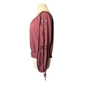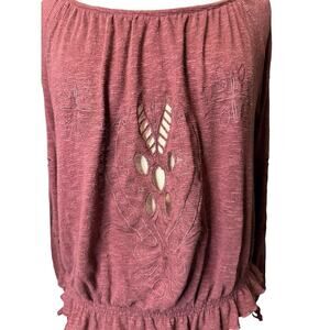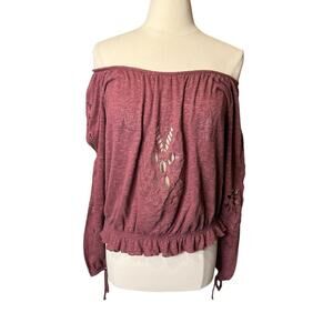 FREE PEOPLE Jewel Eyelet Peasant Top Medium Off Shoulder Purple Mauve