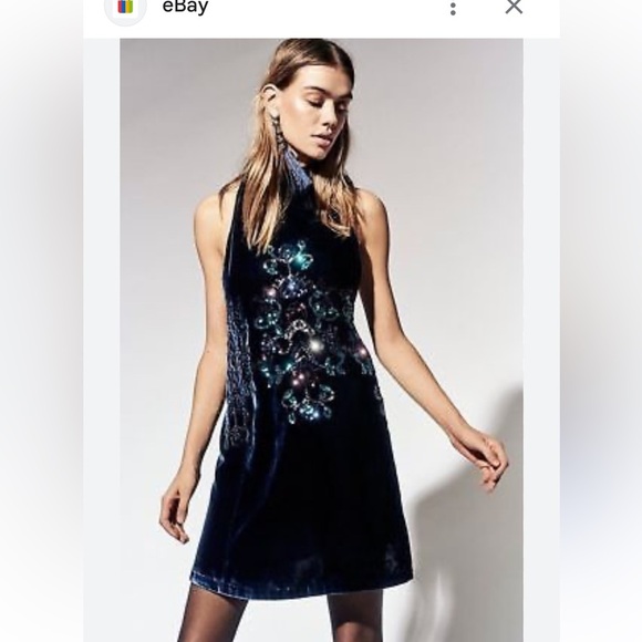 FREE PEOPLE ☮ Jill's Sequin Swing Velvet Dress in Blue Combo Sz: XS
