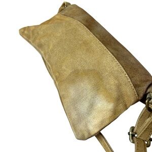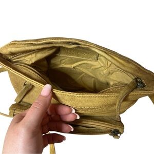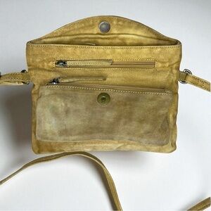 FREE PEOPLE Joni Crossbody Canvas Suede Bag Yellow Distressed Adjustable Purse