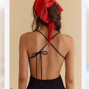 A timeless style with an alluring touch, this staple midi dress from free-est features an A-line skirt and open back for endless styling potential throughout the season.