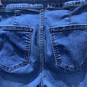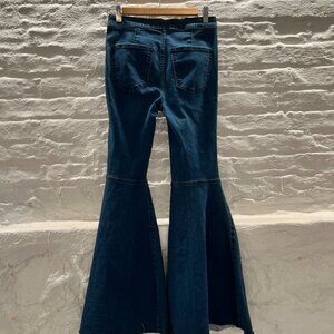 These super flared bell bottoms are almost new - they've been washed, but never worn. They're a deep blue color. Very comfy and stretchy. Size 26 short - 26" waist and a 29" inseam with an intentionally frayed hem. Awesome pants, just haven't had an occasion to wear them.
