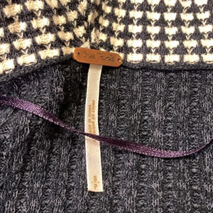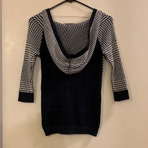FREE PEOPLE Knit Pullover Hoodie in Navy and White