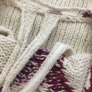 Beautiful knitted tank top - Perfect for this layering season - 2 tone color (cream and magenta/purple) - Racerback - Cotton/Rayon/Acrylic/Nylon - **NOTE: Small snag as shown in picture but not noticeable - SEE PICTURE. - Size tag is no longer attached but fits like a small as I wear a medium (measurements available upon request)