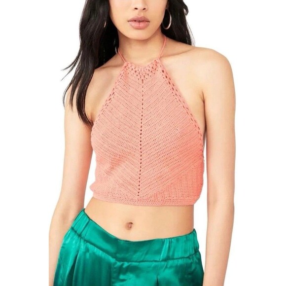 FREE PEOPLE Know Better Brami Knit Halter Crop Top Peach XS New With Tags
