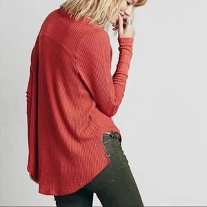 FREE PEOPLE Kristina Drippy Thermal Long-Sleeve in Cheyenne Red Women's Size S