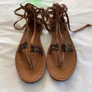 FREE PEOPLE LA JOLLA BOHO WRAP FLAT SANDALS TAN SZ 10