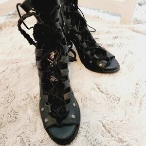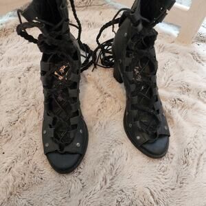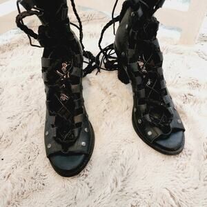 FREE PEOPLE LACE UP BLACK HEELS SIZE 37(6)
