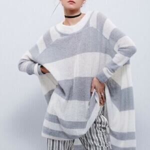 FREE PEOPLE LAFAYETTE ALPACA BLEND MOCK NECK OVERSIZE GRAY/WHITE TUNIC DRESS SIZE S / XS