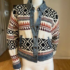 FREE PEOPLE LAKESIDE DENIM AZTEC PRINT JACKET SIZE XS/S XSMALL/SMALL