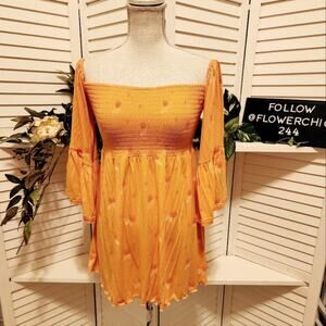 FREE PEOPLE LANA PRINTED OF THE SHOULDER GOLDEN POPPY SIZE MED
